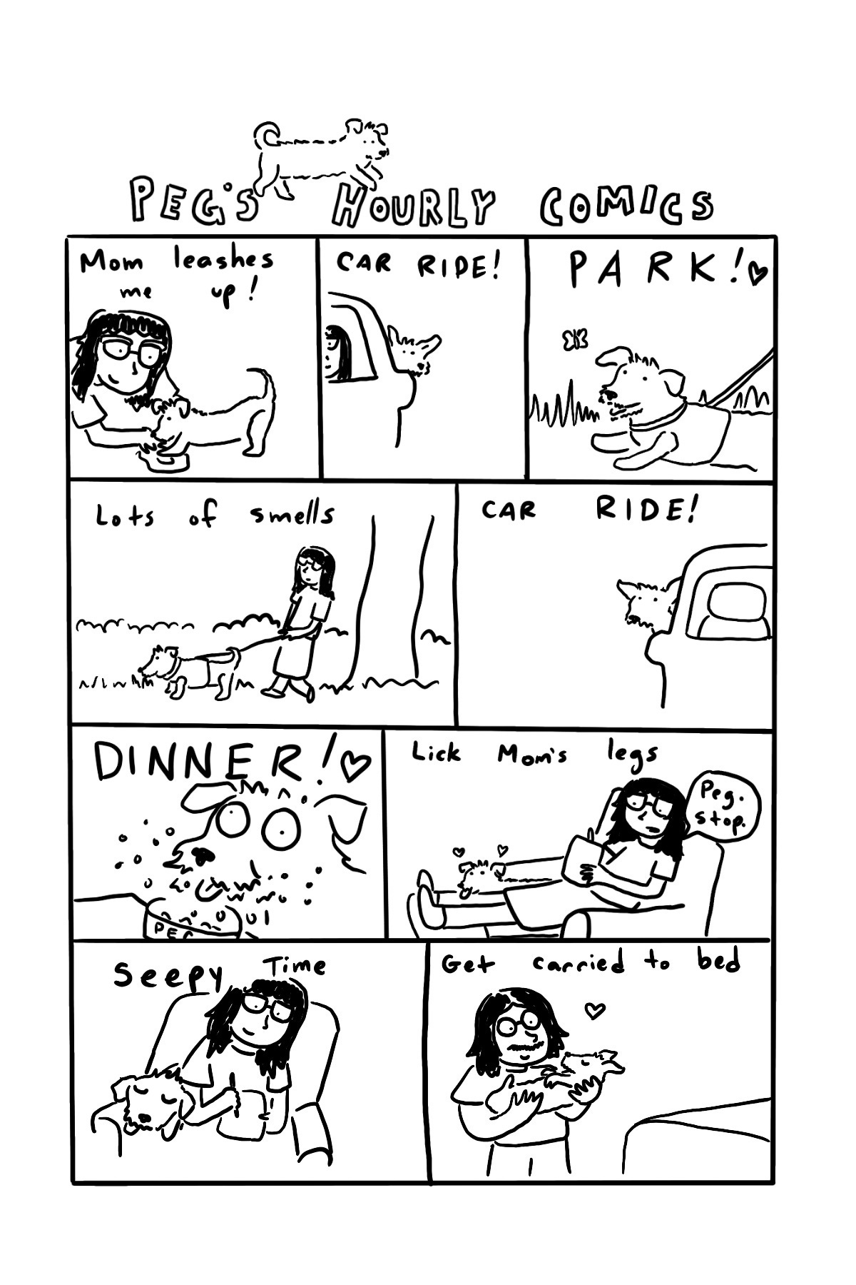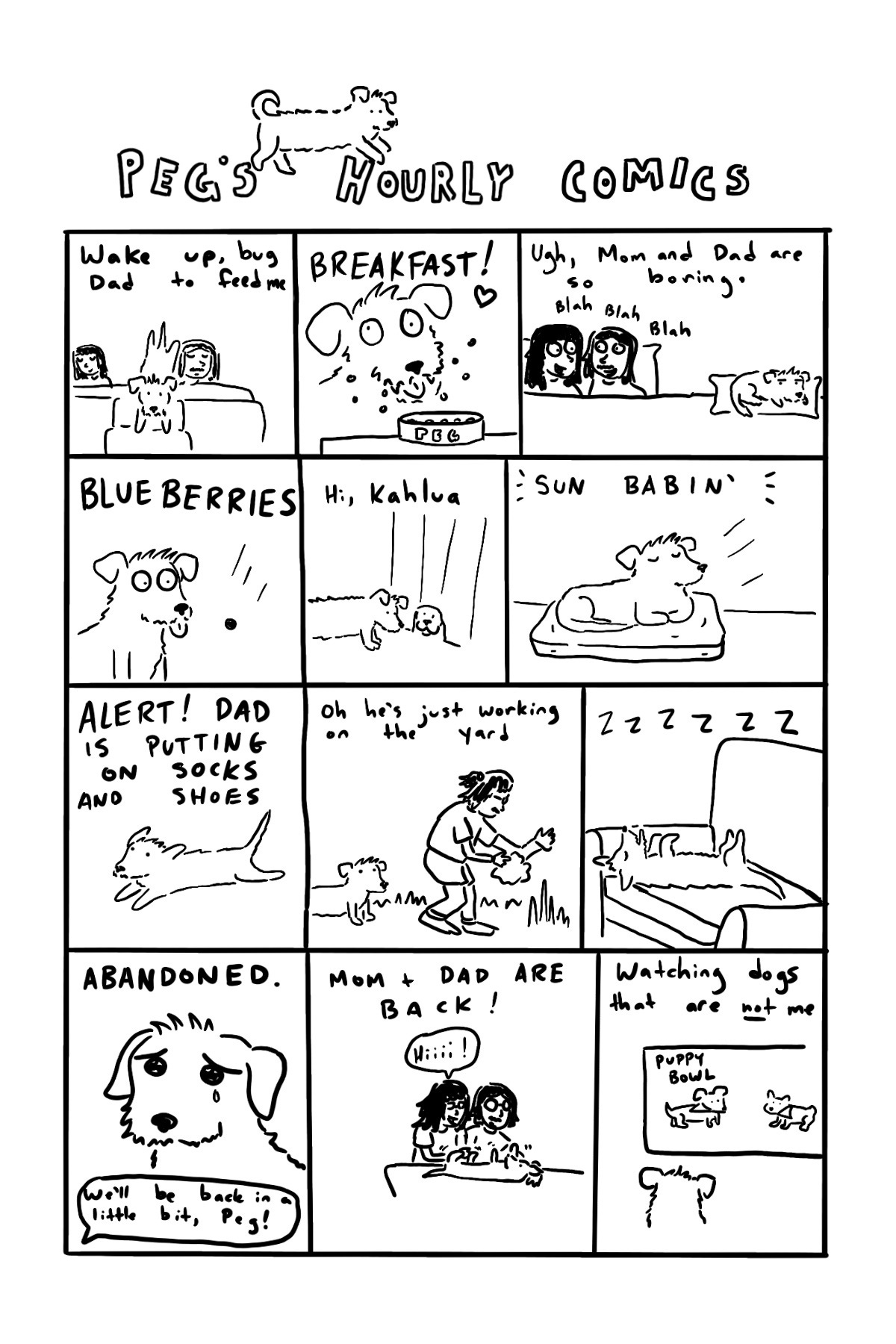 This past Sunday was Hourly Comics Day, an annual event where you draw diary comics for each hour of the day. I have done it for... gosh, maybe 11 or 12 years at this point? I have honestly lost track. It’s been an interesting way to look at my day and document each year, and I very much look forward to it and seeing peeks into other artists’ lives through their comics. This year it fell on a Sunday where I wasn’t really up to much because I had a very busy week before, including an art market the previous night so I was tired and it was my day off so I mostly lazed about with the dog. Anyway, here are my Hourly Comics 2026, with a bonus: Peg’s Hourly Comics!
